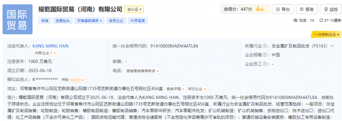 【炭黑產業網】7月23日消息,馬來西亞知名跨國企業耀乾集團在華布局再落重要一子。耀乾國際貿易(河南)有限公司日前在焦作市山陽區正式投入運營,標志著這家深耕輪胎及礦山機械領域37年的跨國企業在中國市場的戰略布局進入新階段。
