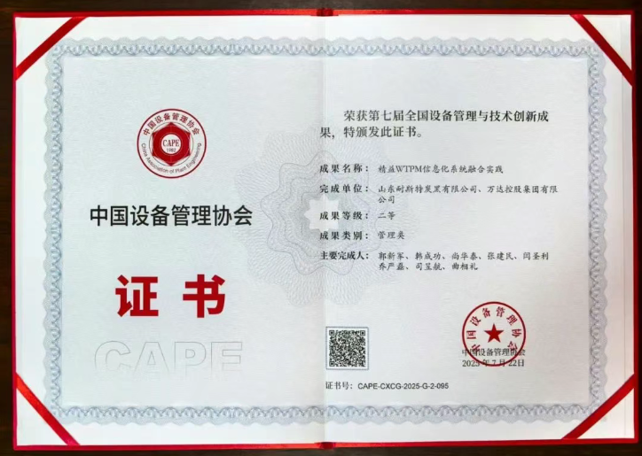 【炭黑產(chǎn)業(yè)網(wǎng)】7月29日消息,在南京舉辦的第七屆全國設(shè)備管理與技術(shù)創(chuàng)新成果交流大會上,萬達化工炭黑事業(yè)部憑借"精益WTPM信息化系統(tǒng)融合實踐"項目脫穎而出,榮獲管理類成果二等獎。這一殊榮充分展現(xiàn)了企業(yè)在設(shè)備管理數(shù)字化轉(zhuǎn)型方面的領(lǐng)先實力。
