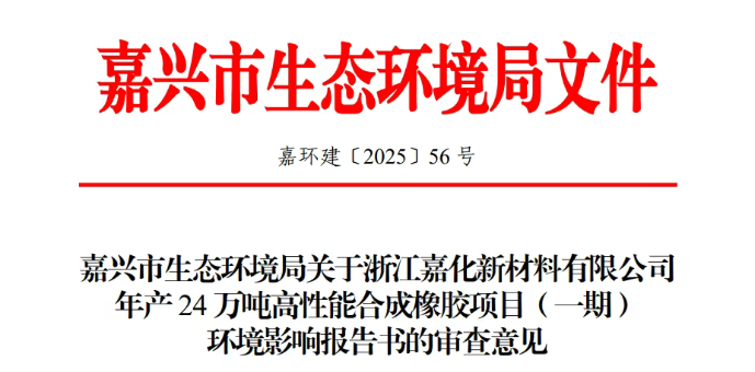 【炭黑產業網】11月5日消息,11月3日,嘉興市生態環境局公告,正式通過了浙江嘉化新材料有限公司年產24萬噸高性能合成橡膠項目(一期)的環境影響評價文件。