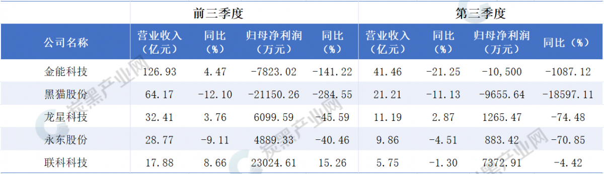 黑貓股份在營業收入和凈利潤方面,下降幅度和虧損擴大幅度在五家企業中均為最大,業績下滑嚴重。黑貓股份表示,系產品銷售單價同比下降導致營收同比減少。