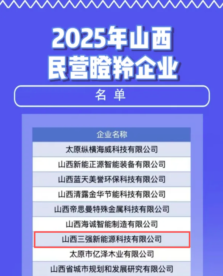 【炭黑產業網】11月17日消息,11月11日,山西省工商聯在太原市舉辦以"科技創新賦能民營企業高質量發展"為主題的2025年山西民營瞪羚企業主題活動,現場正式揭曉本年度山西民營瞪羚企業名單,全省共有67家企業成功入選,其中山西三強新能源科技有限公司赫然在列。